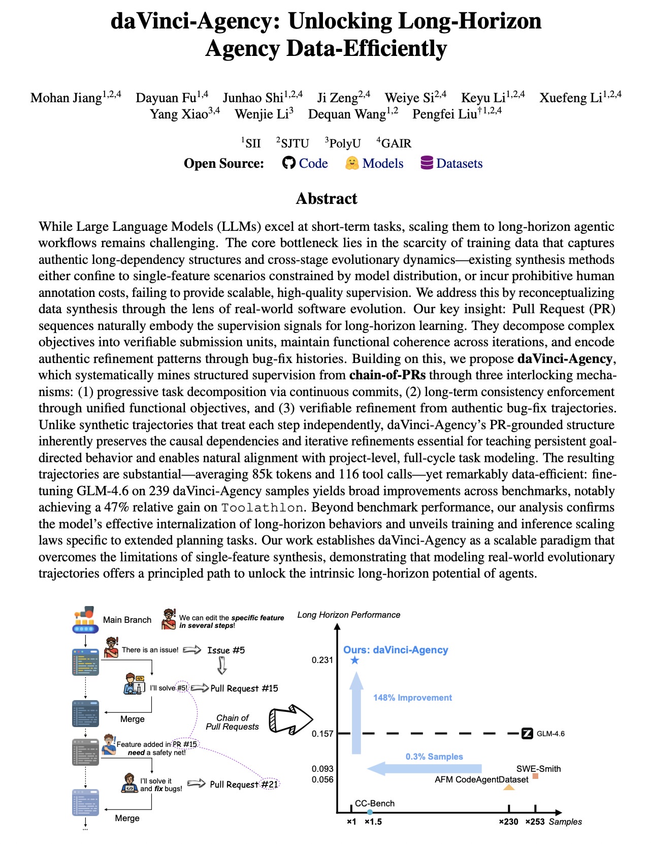 | daVinci-Agency 데이터 효율성 | 239개 → 66,000개 대비 | 99.6% 데이터 감소 |