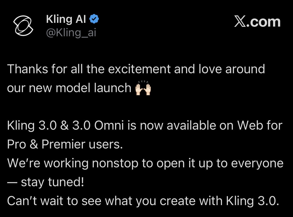 이번 주 가장 주목할 만한 변화는 Kling 3.0의 무료화 조치입니다. 기존에는 Pro와 Premier 구독자만 이용 가능했던 고급 기능이 이제 모든 사용자에게 개방되면서, AI 비디오 생성의 접근성이 획기적으로 개선되었습니다.